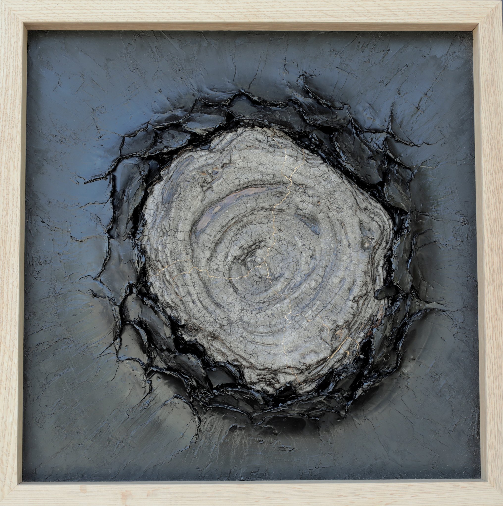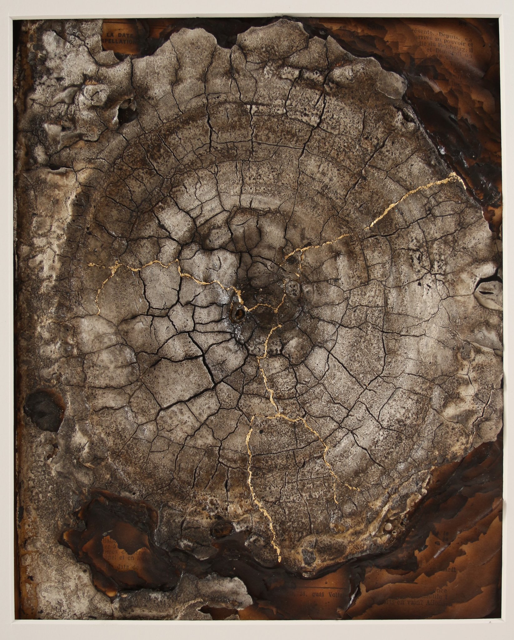Onguents de verre, poudres de silice, fards d'oxydes naturels, parures d'or ou de cuivre... Lentement, j'apprête les livres abandonnés pour leur crémation. L'improbable œuvre au noir de la fusion alchimique du papier et du feu, ces ennemis ancestraux, ressemble à de l'écorce.